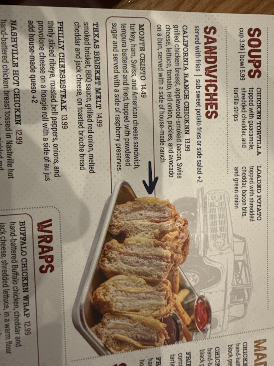 turkey, ham, swiss, and american cheese sandwich, battered and fried, topped with powered sugar, served with a side of preserves (cannot modify meats and cheeses)